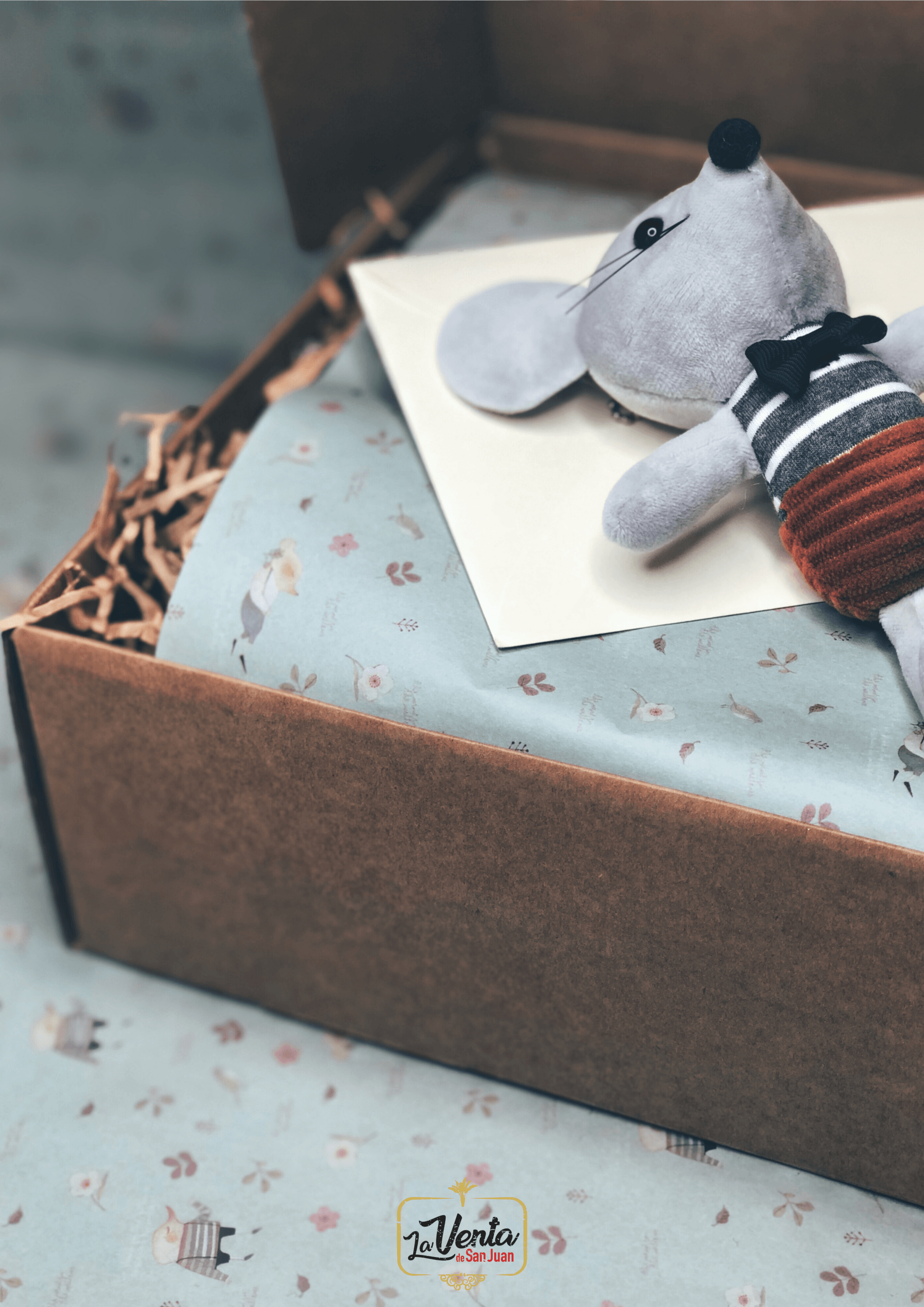 Ratoncito, Mensaje y Cajita vintage "Pequeños valientes". (+4€ Saco ó Cesta)